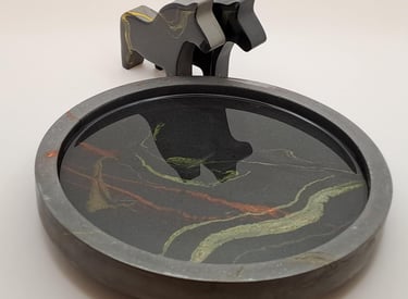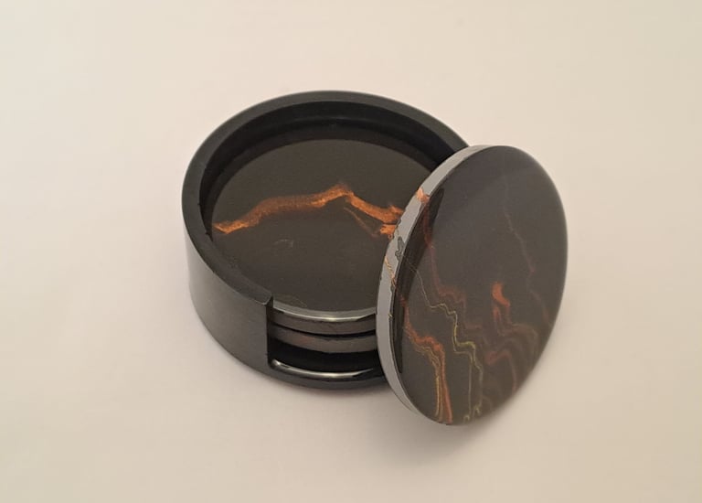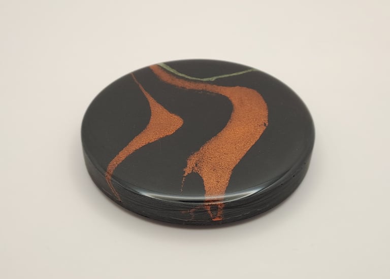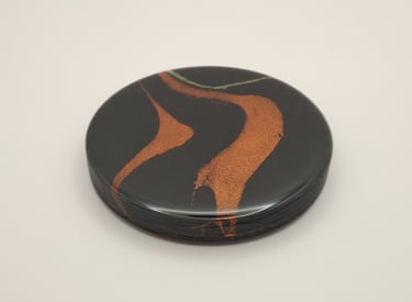 This collection captures the heartbeat of an active volcanic rift. The matte gypsum provides a stable, silent foundation, while the resin interplays with metallic paint and pulses through like glowing magma. It is the most direct expression of Ash and Sheen—the charred remains of a landscape enlivened by a golden, radiant light.