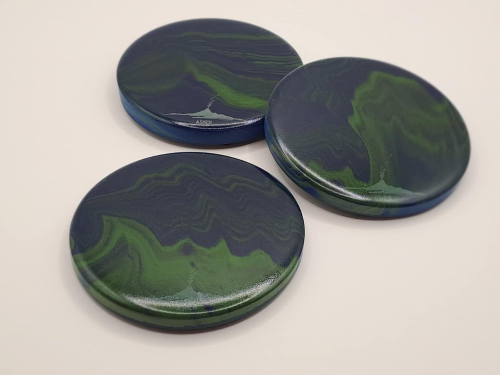 Yet, dancing upon obsidian pools, a luminous veil of hand-poured resin captures the sheen within. This translucent medium acts as a vessel for radiance, echoing the crystalline purity of glacial cathedrals and the liquid shimmer of the Aurora as it ripples through the velvet sky. By marrying the rugged grit of volcanic ash with the sleek structural grace of fine resins, Asheen freezes a moment of motion—the velvet glisten of tide-washed sands and the rhythmic pulse of the elements—to breathe vitality into inhabited spaces.